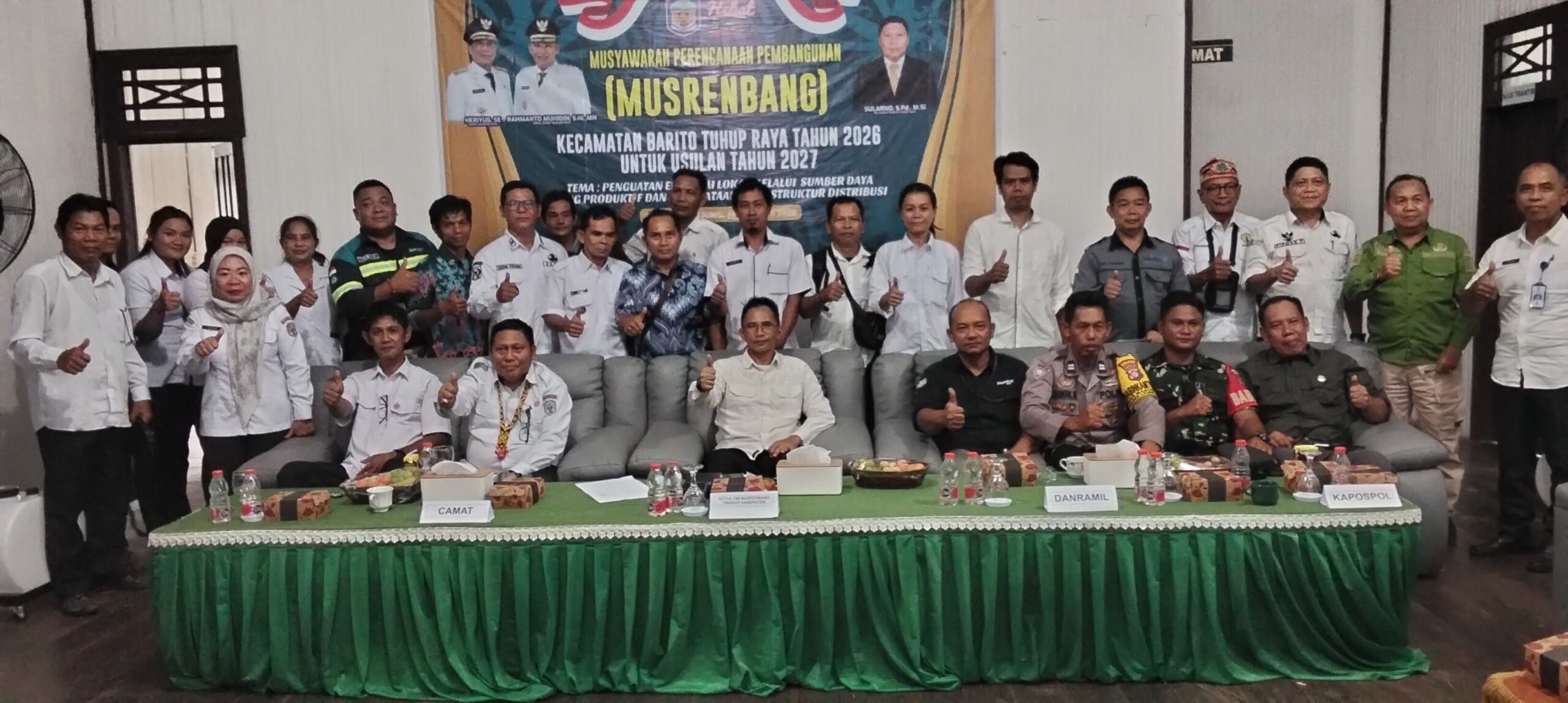 Musyawarah Perencanaan Pembangunan (Musrenbang) tingkat Kecamatan Barito Tuhup Raya digelar dengan mengusung tema Penguatan Ekonomi Lokal melalui Sumber Daya Produktif dan Pemerataan Infrastruktur Distribusi. Kegiatan yang berlangsung di Aula Kecamatan Barito Tuhup Raya tersebut dilaksanakan pada Rabu (28/1/2026).