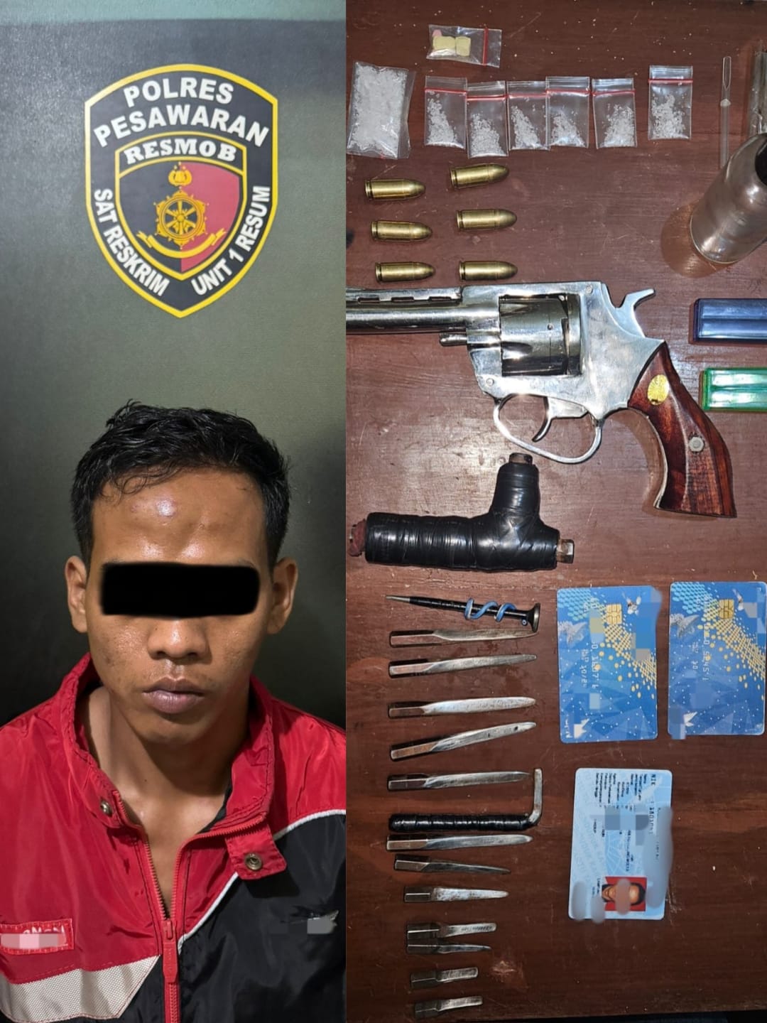 Dalam proses penangkapan, pelaku juga diketahui mengeluarkan senjata api rakitan jenis revolver dan sempat mengarahkannya ke petugas. Tim memberikan tembakan peringatan dan bergerak cepat mengendalikan situasi hingga pelaku berhasil diamankan tanpa menimbulkan korban.