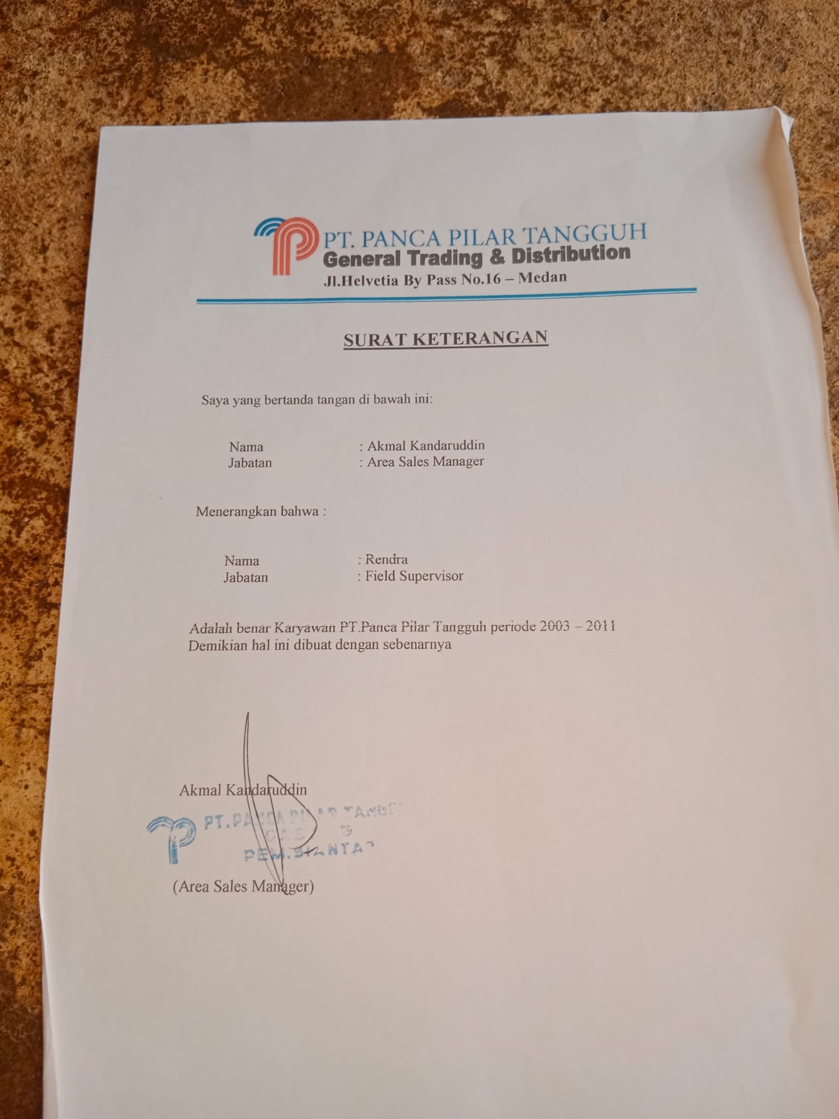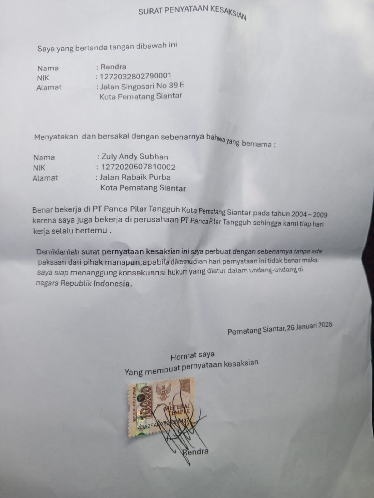 Rendra menyatakan dirinya pernah menjabat sebagai Fricid Supervisor, dibuktikan dengan dokumen yang ditandatangani Akmal Kamaruddin. Sementara itu, Zuly Andi Subhan juga disebut pernah aktif bekerja di perusahaan tersebut, bahkan diperkuat dengan surat pernyataan yang dibuat Rendra sebagai saksi. Dokumen-dokumen itu kini menjadi bagian dari upaya pembuktian dalam proses mediasi.