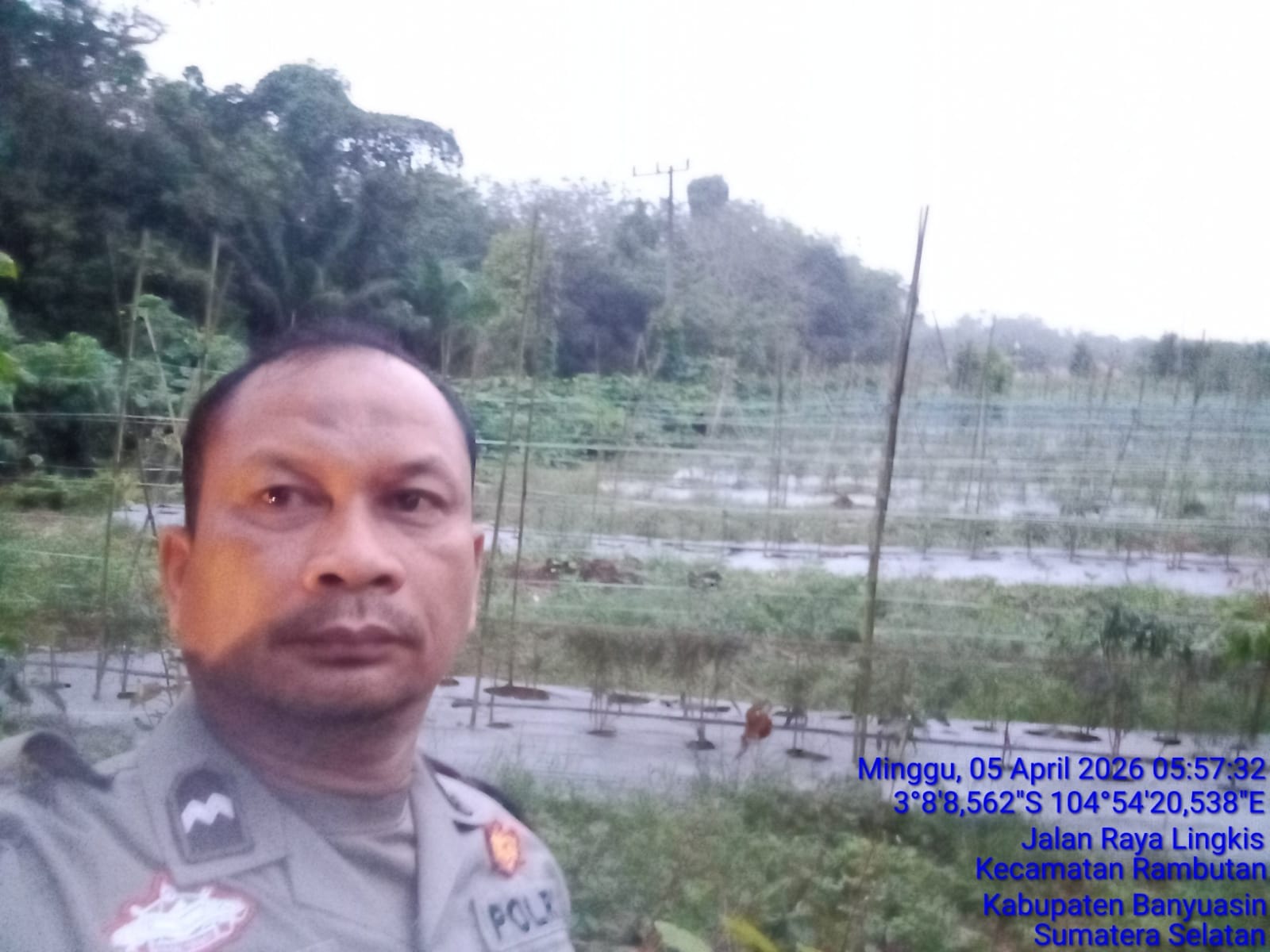 Banyuasin, Domainrakyat.com–Dalam upaya mendukung program pemerintah mewujudkan ketahanan pangan nasional, seorang Bhabinkamtibmas Polsek Rambutan, Aipda Arifin Ahmad SH, terlihat aktif melaksanakan kegiatan perawatan tanaman cabai di lahan pekarangan warga. Kegiatan ini berlangsung pada Minggu (5/4/2026) siang, di Desa Tanah Lembak, Kecamatan Rambutan, Kabupaten Banyuasin.