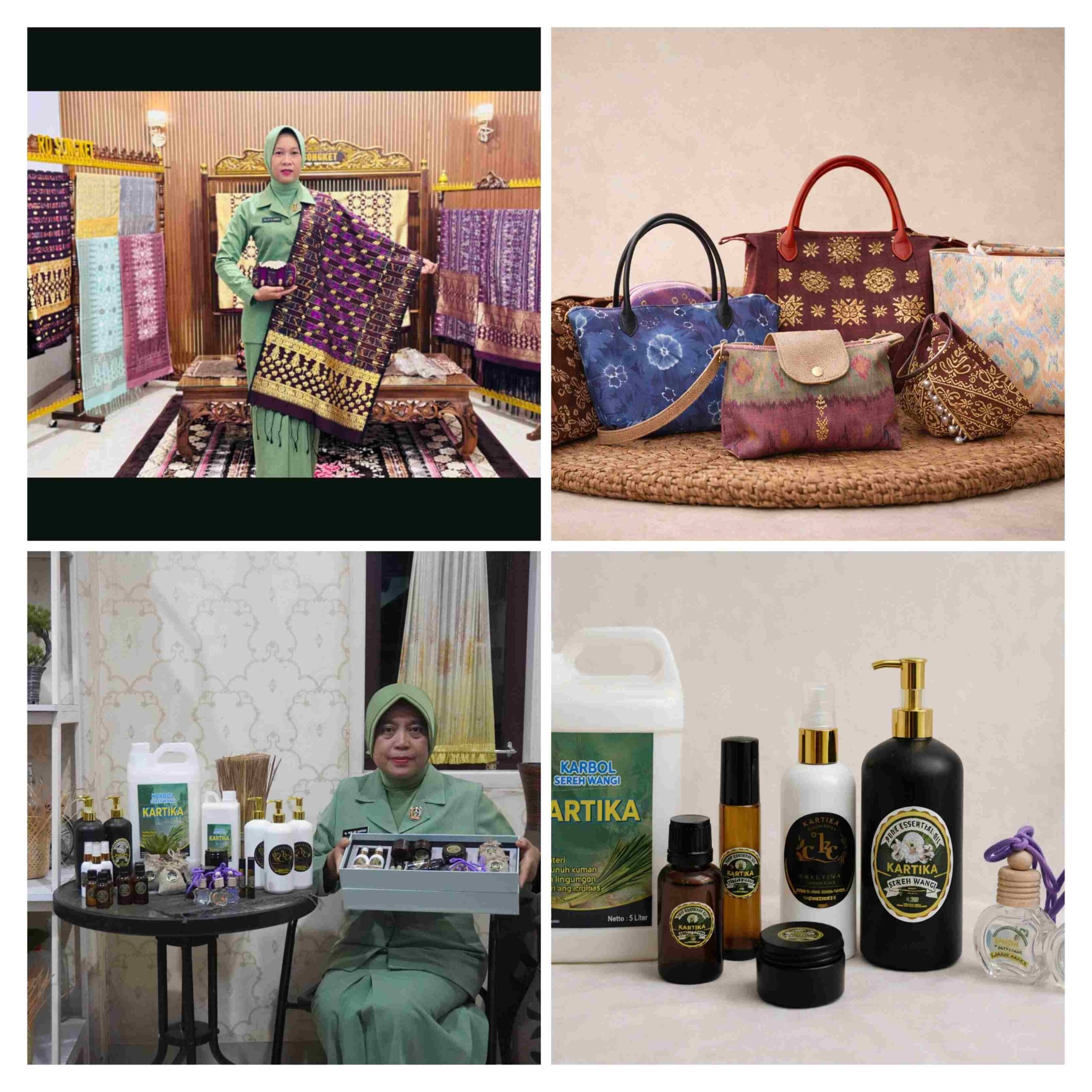 Produk yang ditampilkan mencerminkan kekayaan budaya sekaligus inovasi lokal, seperti kain tenun songket Palembang, kerajinan anyaman lidi nipah, produk aromaterapi sereh wangi, tapis Lampung modern, serta tas dan pouch handmade berbasis wastra Nusantara.
