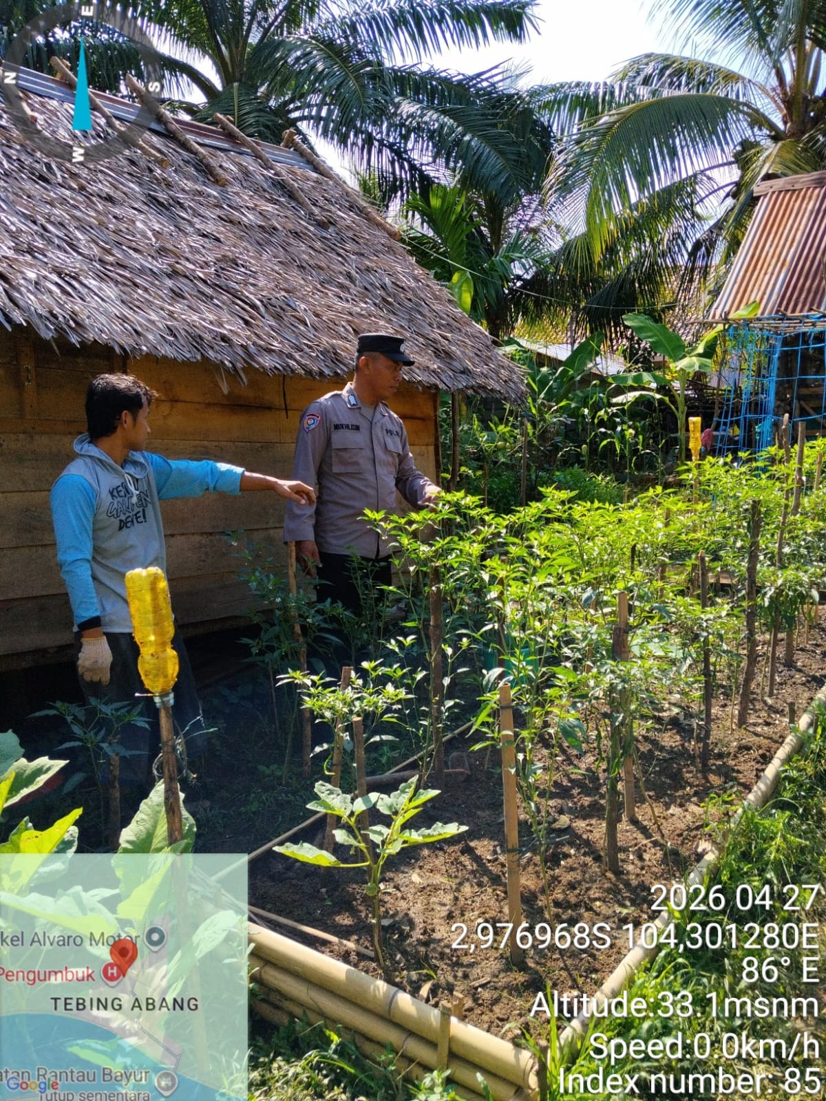 Banyuasin,Domainrakyat.com– Dalam upaya mendukung program strategis Presiden RI di bidang ketahanan pangan, Bhabinkamtibmas Polsek Rantau Bayur menggelar kegiatan imbauan dan penggerakan masyarakat di Dusun III, Desa Tebing Abang, Kecamatan Rantau Bayur, Kabupaten Banyuasin, Senin (27/4/2026) siang.