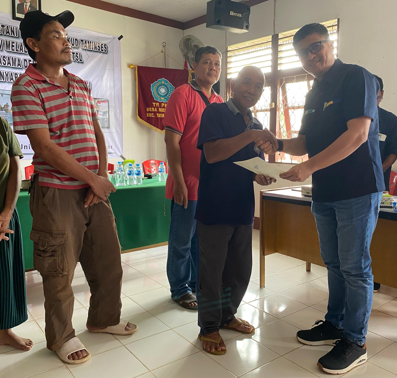 DOMAINRAKYAT.COM,SANGGAU – PTPN IV Regional V melalui Unit Kemitraan Area Kalimantan Barat bersama Pemerintah Desa Menyabo, Kecamatan Tayan Hulu, Kabupaten Sanggau, melaksanakan penyerahan sertifikat Program Pendaftaran Tanah Sistematis Lengkap (PTSL) kepada Petani Plasma KKPA mitra PTPN IV Regional V KUD Taminses. Kegiatan berlangsung di Aula Kantor Desa Menyabo, Selasa (4/03/2025). Sebanyak 38 sertifikat tanah diserahkan kepada petani yang telah melunasi kewajiban cicilan kredit dari total 351 sertifikat yang terbit.