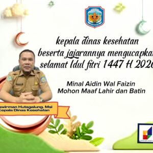Momentum Hari Raya Idulfitri 1447 Hijriah menjadi saat yang penuh makna bagi umat Muslim untuk saling memaafkan dan mempererat silaturahmi. Dalam suasana penuh kebahagiaan tersebut, Kepala Dinas Kesehatan Kabupaten Murung Raya, dr. Suwirman Hutagalung, M.Si, menyampaikan ucapan selamat Hari Raya Idulfitri kepada seluruh masyarakat di Bumi Tana Malai Tolung Lingu.