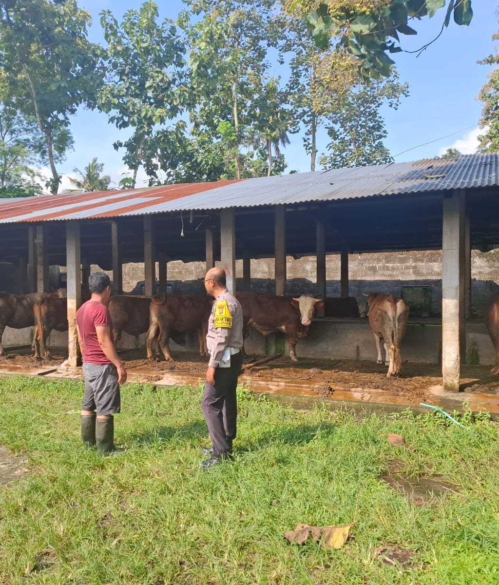 Kegiatan monitoring dilakukan di pekarangan rumah Bapak Yudi yang telah memanfaatkan lahan kosong untuk peternakan sapi. Dalam kesempatan tersebut, Aipda George memberikan himbauan kepada warga setempat mengenai pentingnya pemanfaatan tanah lapang untuk ditanami sayur-mayur sebagai upaya menjaga ketahanan pangan keluarga.