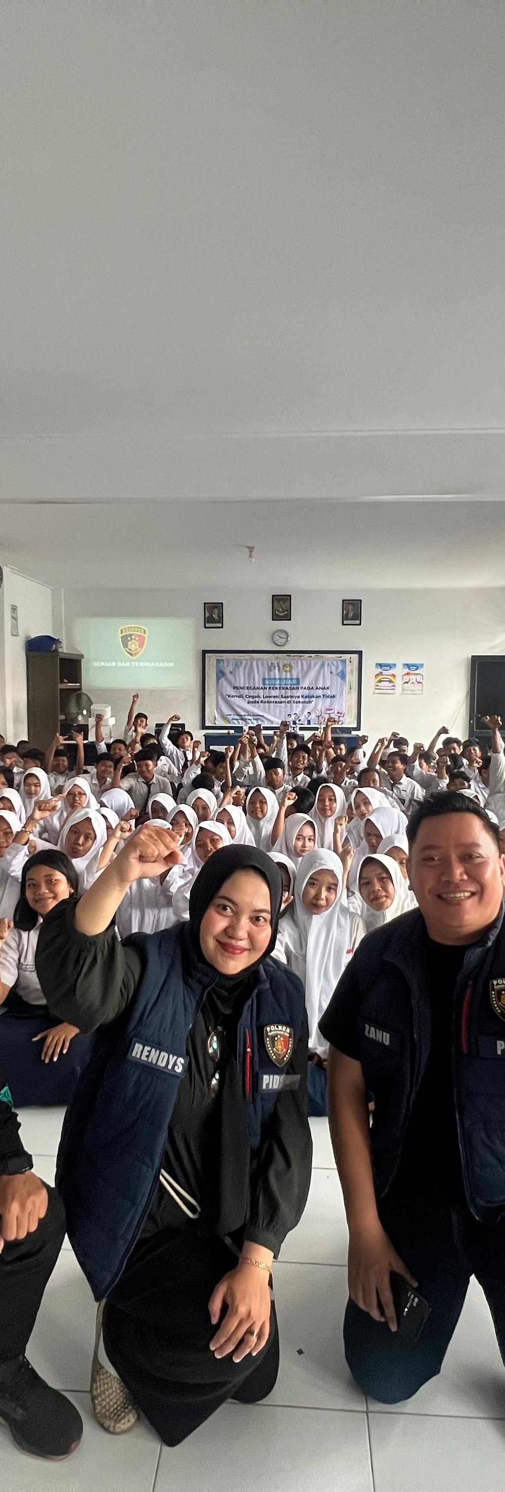 Petugas dari Unit Idik V PPA yang terdiri dari Bripka Zanu Tri Widodo, Brigadir Rendys Oktarias, dan Bripda Ahmad Dani secara aktif berinteraksi dengan para siswa-siswi.