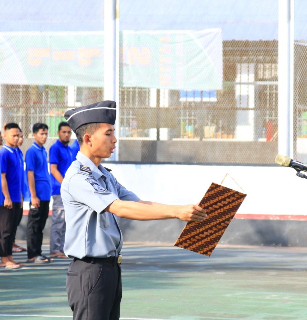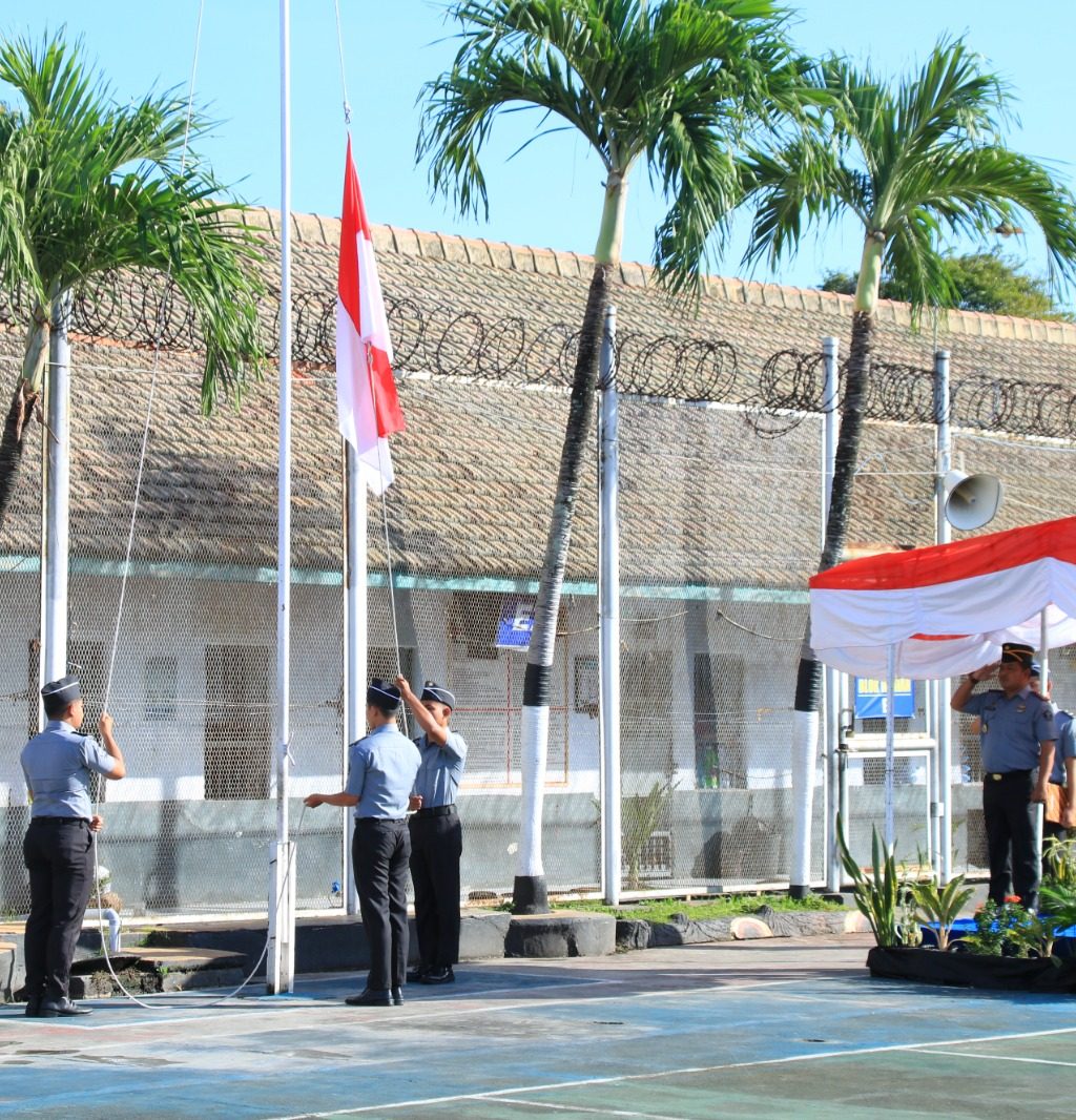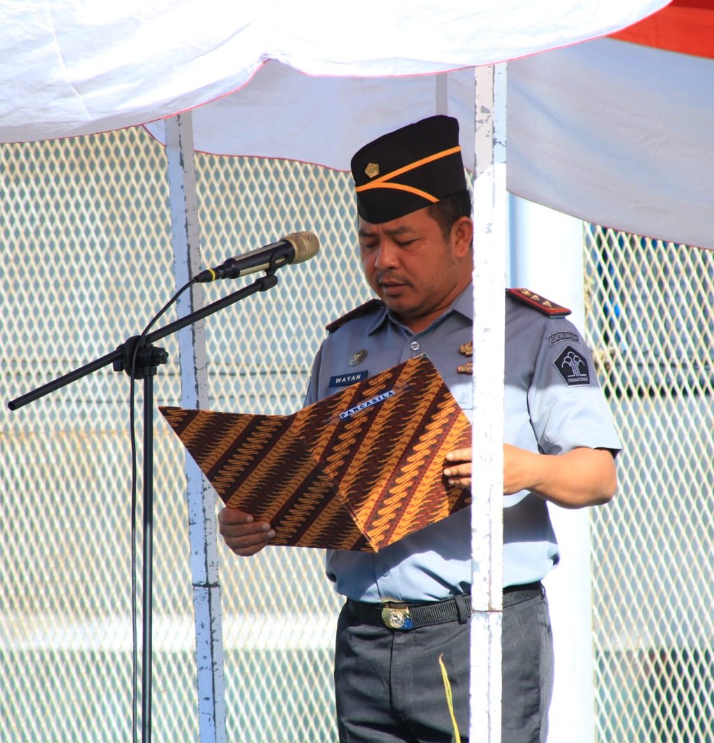 Kepala Lapas Banyuwangi, I Wayan Nurasta Wibawa yang memimpin langsung upacara menyampaikan pidato dari Kepala Badan Pembinaan Ideologi Pancasila, Yudian Wahyudi.