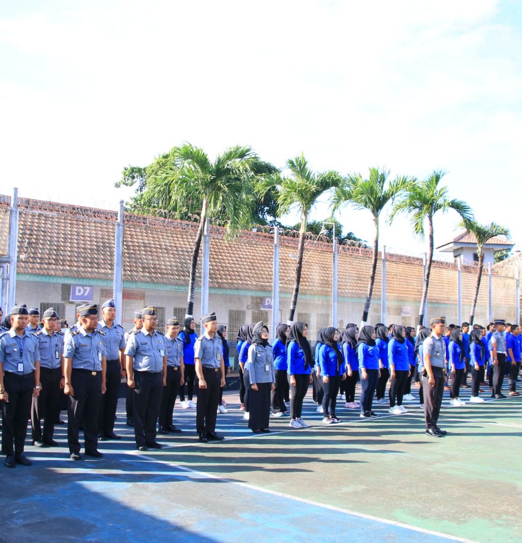Lembaga Pemasyarakatan (Lapas) Kelas IIA Banyuwangi menggelar upacara bendera dalam rangka Peringatan Hari Lahir Pancasila Tahun 2025, Senin (2/6). Petugas dan warga binaan kompak mengikuti upacara yang digelar di Lapangan Blok Timur itu.