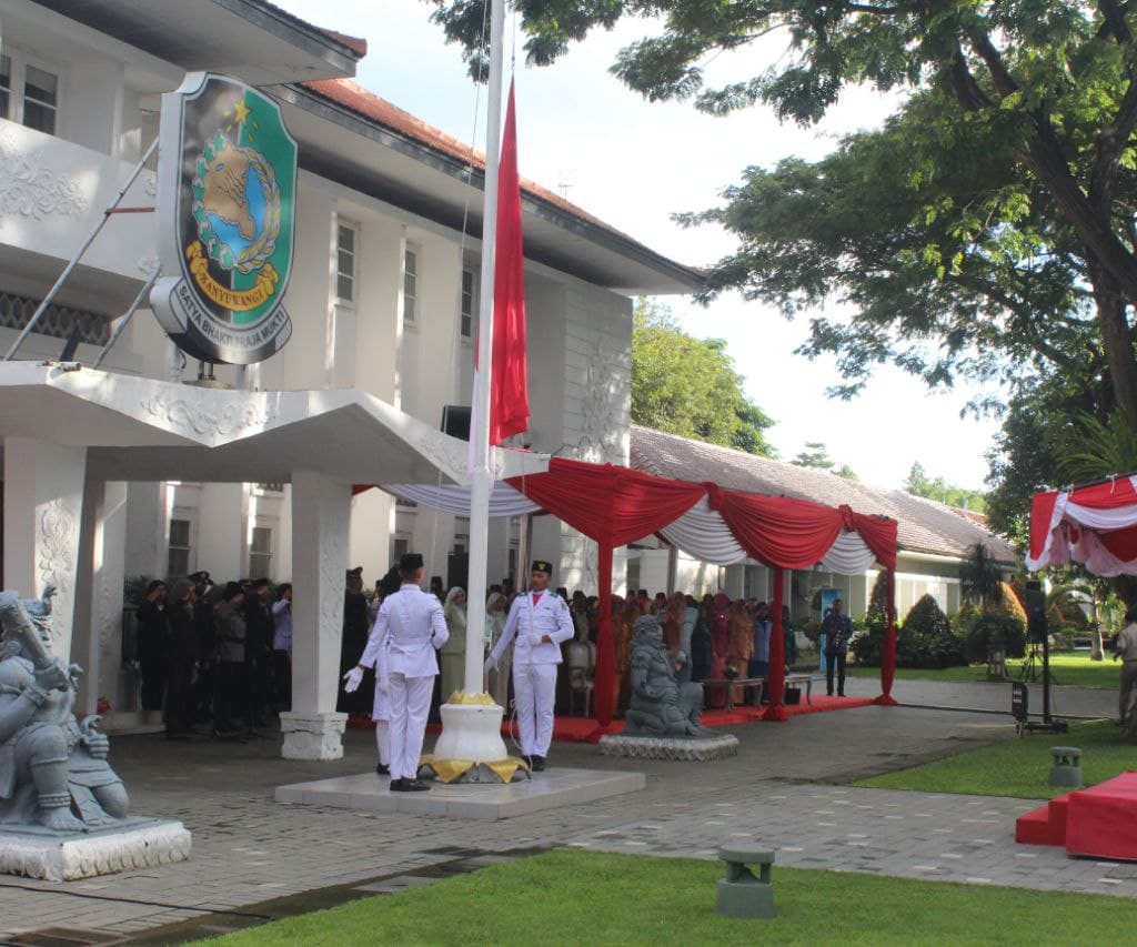 Nilai-nilai pancasila menjadi landasan pembangunan di Kabupaten Banyuwangi. Hal ini disampaikan Wakil Bupati Wakil Bupati Banyuwangi Mujiono saat menjadi inspektur upacara peringatan Hari Lahir Pancasila di halaman kantor bupati Banyuwangi, Senin (2/6/2025).
