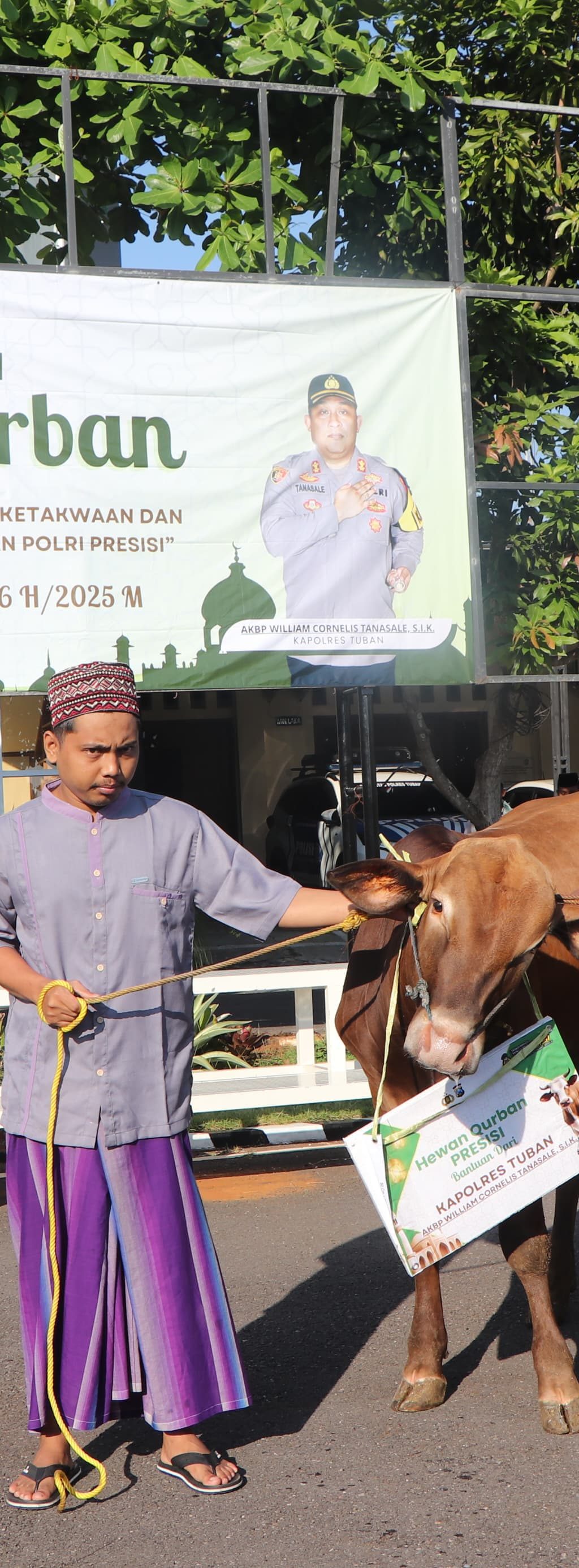 Dalam rangka merayakan Hari Raya Idul Adha 1446 H, Kepolisian Resor (Polres) Tuban Polda Jatim melaksanakan kegiatan sosial berupa penyaluran hewan kurban ke berbagai elemen masyarakat.