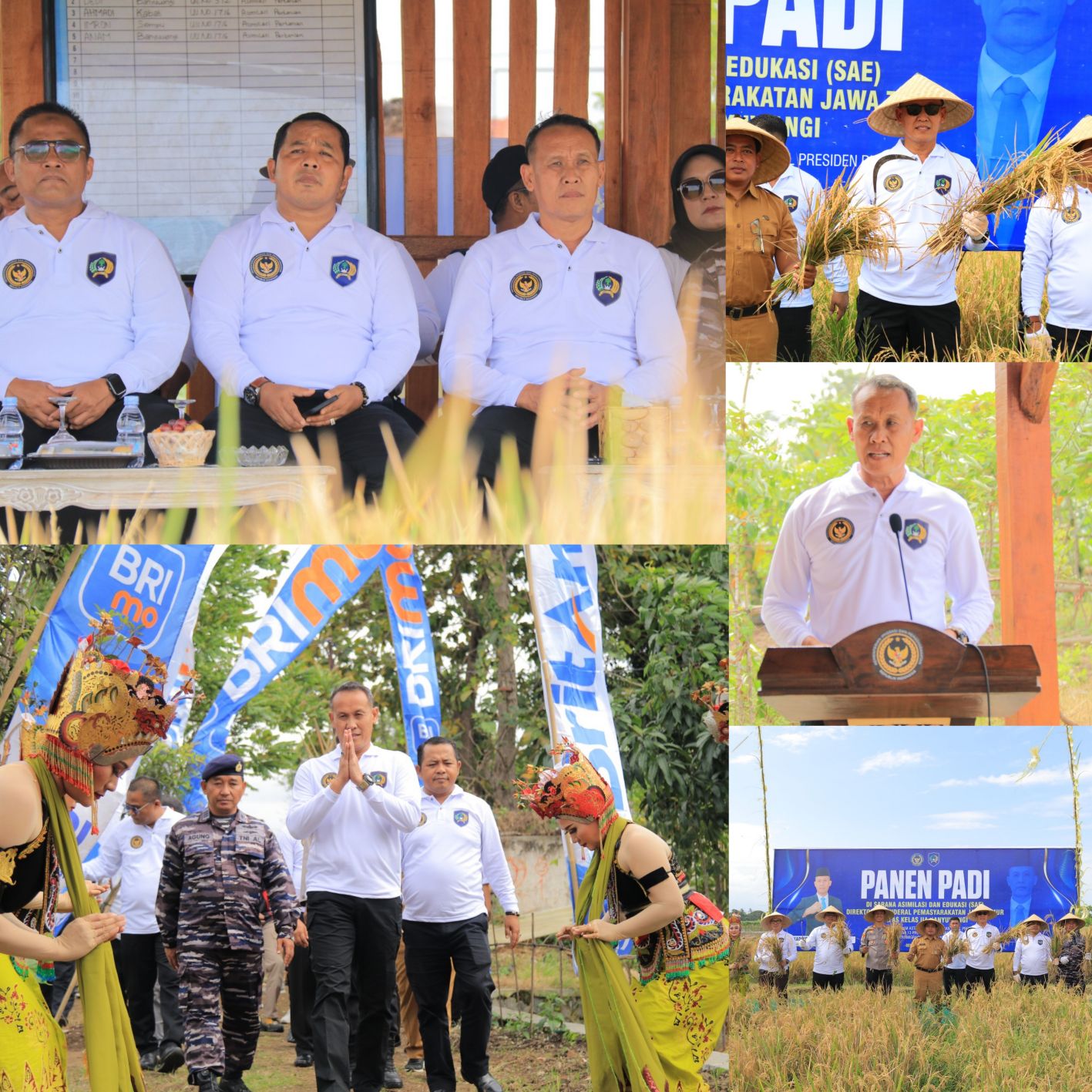 Kepala Kantor Wilayah Direktorat Jenderal Pemasyarakatan Jawa Timur (Kakanwil Ditjenpas Jatim), Kadiyono memimpin pelaksanaan panen raya padi di Sarana Asimilasi dan Edukasi (SAE) Lembaga Pemasyarakatan (Lapas) Kelas IIA Banyuwangi yang terletak di Kelurahan Pakis, Selasa (10/6).