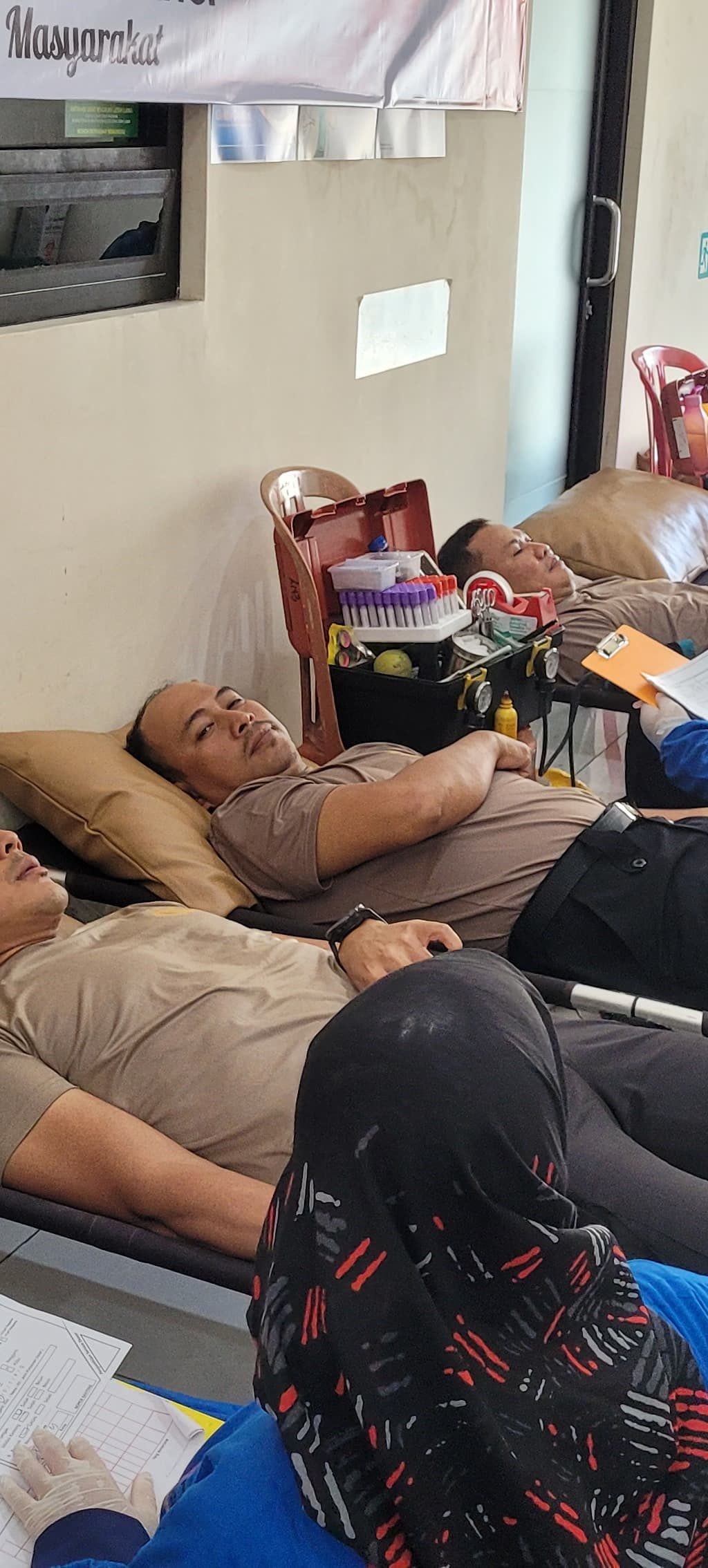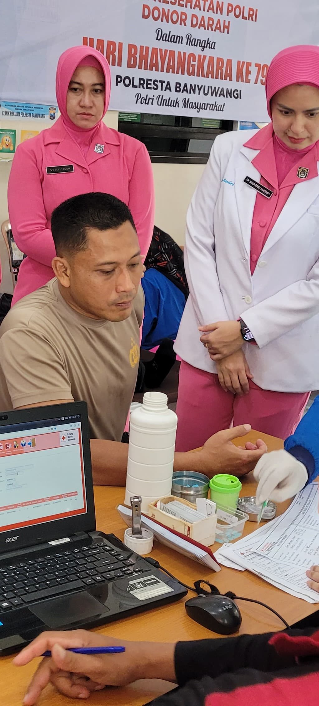 Kasi Dokkes Polresta Banyuwangi, Penata Nur Prasetyo Hadi, S.T., menjelaskan Kegiatan kesehatan ini melibatkan personel dari Sidokkes Polresta Banyuwangi, RS Bhayangkara Bondowoso, dan PMI Kabupaten Banyuwangi.