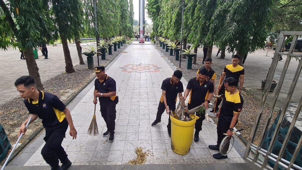 Polresta Banyuwangi Gelar Bakti Religi, Bersihkan Area TMP Wisma Raga Satria