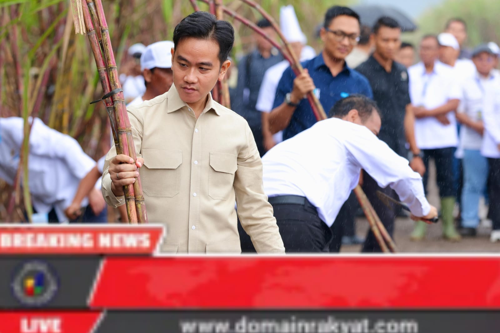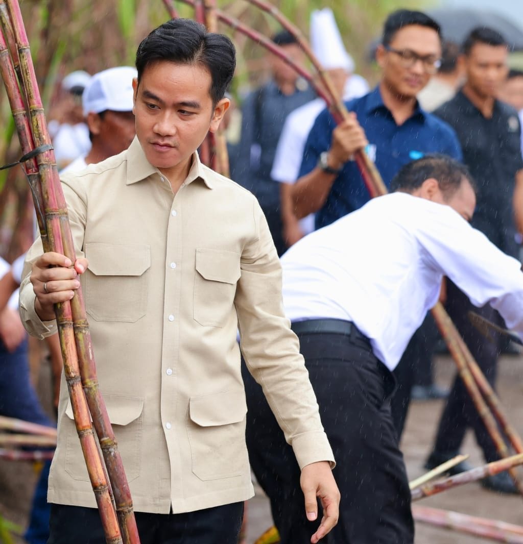 Selama dua hari Wakil Presiden Gibran Rakabuming melakukan kunjungan kerja ke Banyuwangi, Senin-Selasa, (23/24/6/2025). Di hari pertama, Gibran mengawali dengan panen dan dialog dengan petani tebu di panen tebu di Kebun Tebu Jolondoro di sekitar PT Industri Gula Glenmore (IGG), Kecamatan Glenmore, Banyuwangi.
