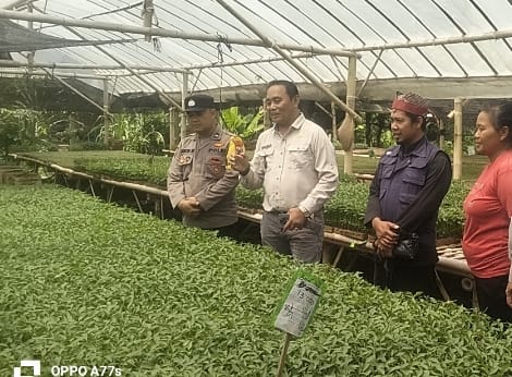 Bhabinkamtibmas Desa Sarimulyo Aipda Mursid bersama Pemdes turun langsung ke lapangan, didampingi dua petani lokal yang selama ini aktif mengelola kebun. Selain mengecek kondisi tanaman, personel juga memberi dukungan moral dan menyampaikan pesan agar para petani tidak ragu melaporkan kendala pertanian, seperti ancaman gagal panen atau hama.