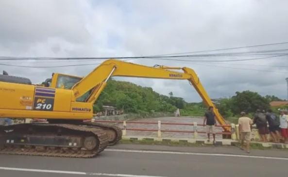 Alat berat telah diturunkan untuk mencegah penyumbatan arus air oleh material seperti batang kayu dan bambu yang terbawa arus, agar tidak tersangkut di bawah jembatan.