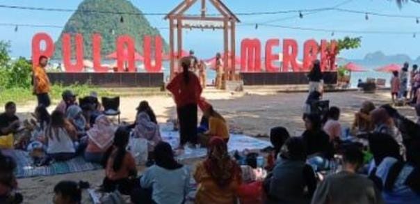 Pemandangan Pantai Pulau Merah, Memikat hati. Keindahan alamnya yang menakjubkan, khususnya di Desa Pulau Merah, Kecamatan Pesanggaran, menarik wisatawan lokal, mancanegara, bahkan dari Pulau Bali. Mereka berkumpul Pas Momet Di Bulan 1 Muharram 1447 H, menunjukkan daya tarik wisata Banyuwangi yang luar biasa.