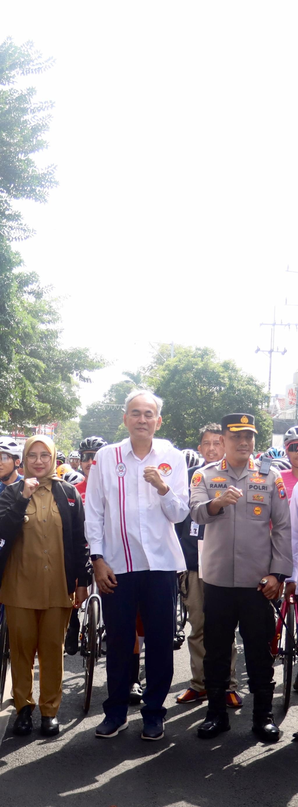 Kapolresta Banyuwangi, Kombes Pol Rama Samtama Putra, S.I.K., M.Si., M.H., melepas para pembalap dari titik start di halaman Kantor Pemkab Banyuwangi menuju garis finish di wilayah Licin.