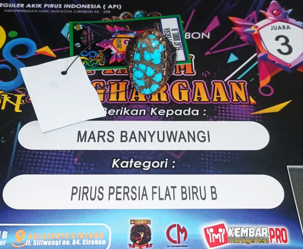 Juara 3 untuk Pirus Kerman Bebas Ukuran, Pirus Persia Flat Biru B, Pirus USA, Pirus Badar, serta Pirus Fashion Ring