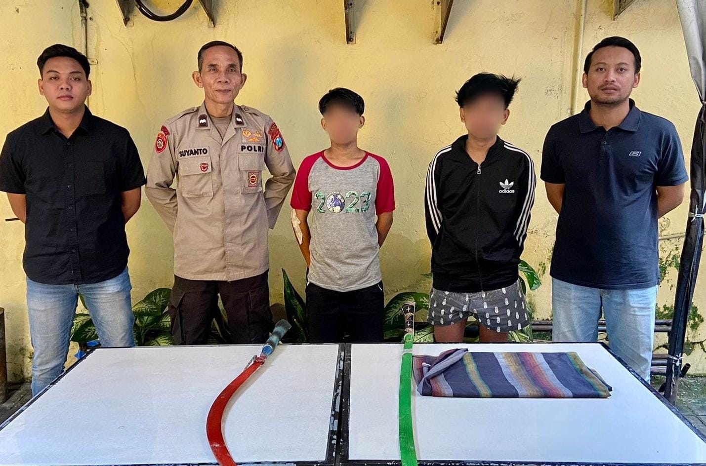 Sebanyak Dua remaja diamankan beserta dua senjata tajam (sajam) jenis celurit dan cocok bebek (corbek).