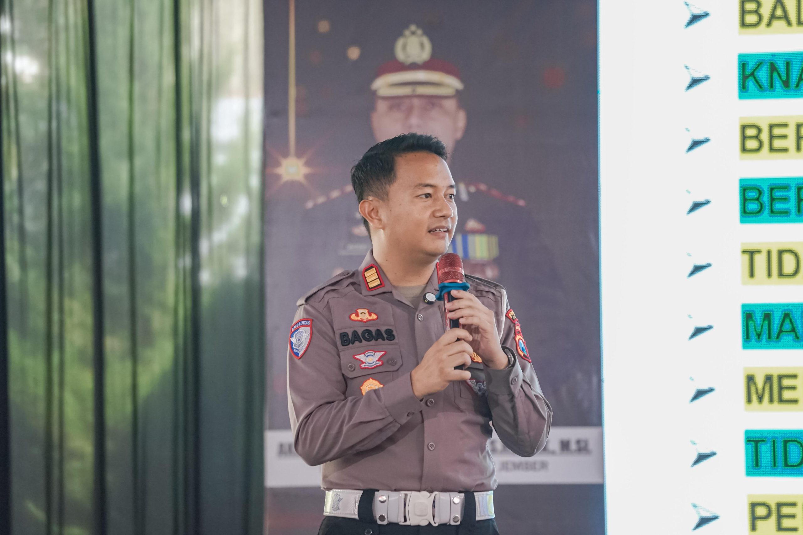 Kapolres Jember, AKBP Bobby A Condroputra melalui Kasatlantas,Kasat Lantas Polres Jember, AKP Bernardus Bagas Simarmata mengatakan kegitan ini bertujuan untuk memberikan edukasi keselamatan berlalu lintas sejak dini kepada para santri.