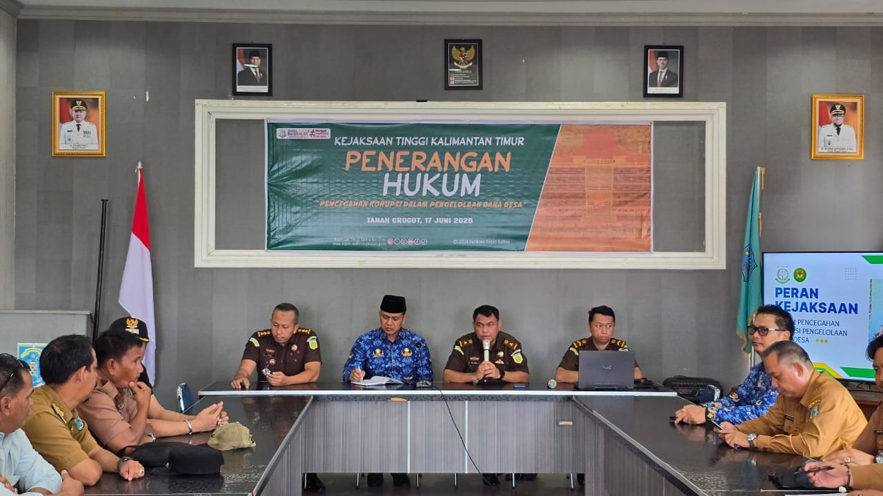 DomainRakyat.Com, Paser Pada hari Selasa tanggal 17 Juni 2025, Kejaksaan Tinggi Kalimantan Timur melalui Bidang Intelijen melaksanakan kegiatan Penerangan Hukum kepada para Perangkat Desa (Pengelola Keuangan Dana Desa) di Kecamatan Tanah Grogot, Kabupaten Paser.
