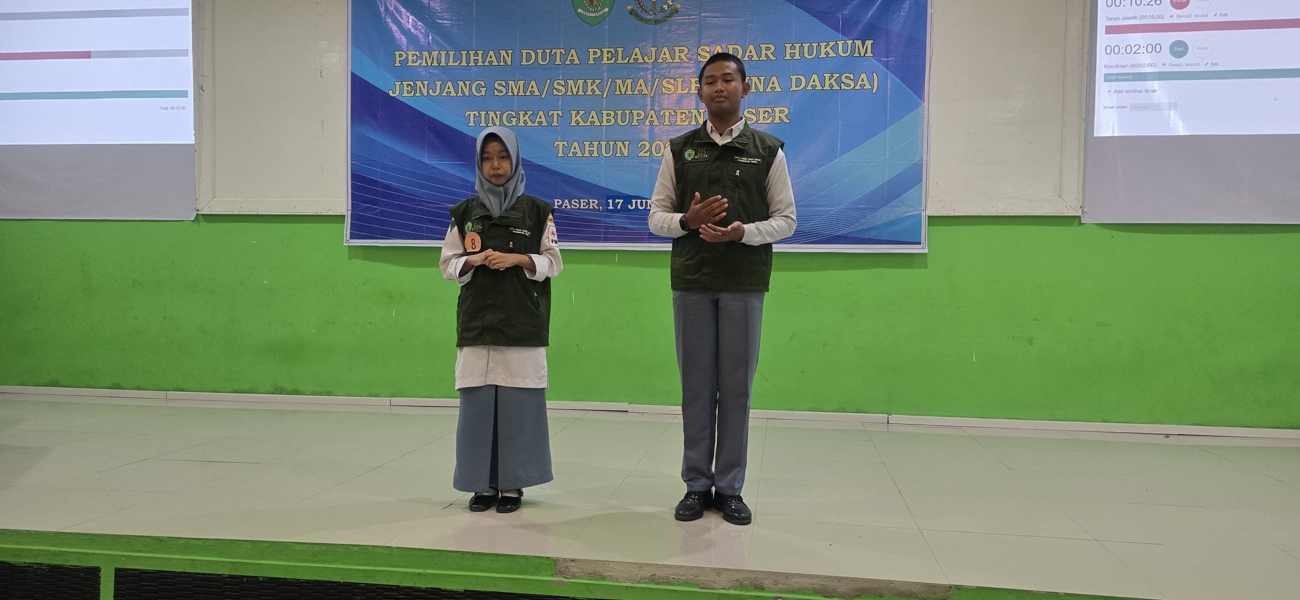 Pada Hari yang Sama Selasa tanggal 17 Juni 2025 sekira pukul 09.00 WITA, bertempat di Aula SMK Negeri 1 Tanah Grogot, Kabupaten Paser, Kalimantan Timur telah dilaksanakan pemilihan Duta Pelajar Sadar Hukum jenjang SMA/SMK/MA/SLB (Tuna Daksa) Tingkat Kota/Kabupaten Tahun 2025 di Kabupaten Paser.