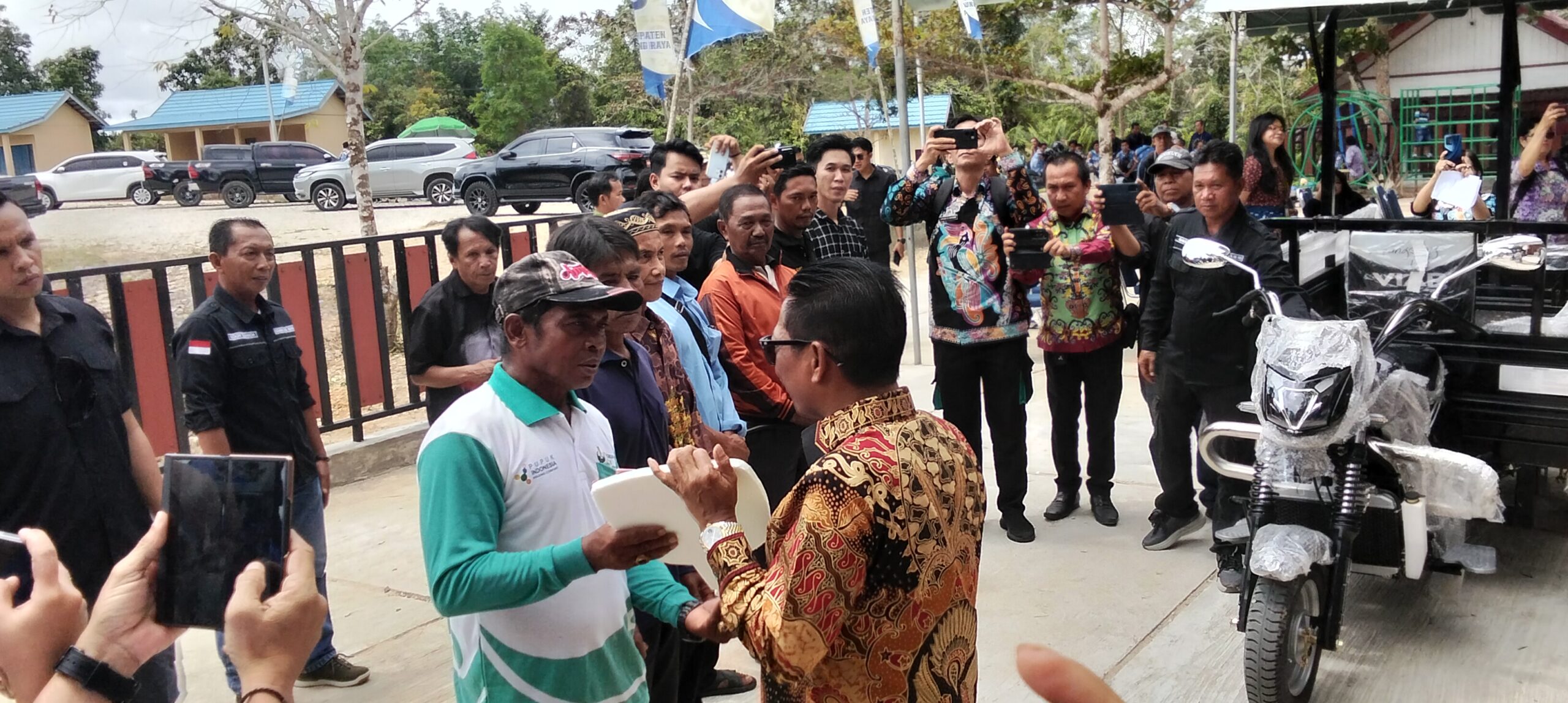 Komitmen memperkuat sektor pertanian kembali ditegaskan Bupati Murung Raya dengan menyerahkan secara simbolis 7 unit kendaraan roda tiga merek Viar kepada tujuh kelompok tani, Jumat (13/2/2026). Penyerahan bantuan tersebut dilakukan di sela-sela peresmian Objek Wisata Pasir Putih dan disaksikan jajaran pejabat daerah serta unsur Forkopimda.