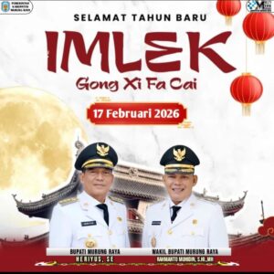 Bupati Murung Raya, Heriyus. SE , secara resmi menyampaikan ucapan Selamat Tahun Baru Imlek 4724 Kongzili atau Tahun 2026 Masehi, Tahun Kuda Api, kepada seluruh komunitas Tionghoa, khususnya yang bermukim di Kabupaten Murung Raya. Ucapan tersebut disampaikan sebagai bentuk penghormatan atas keberagaman serta kontribusi nyata masyarakat Tionghoa dalam pembangunan daerah.