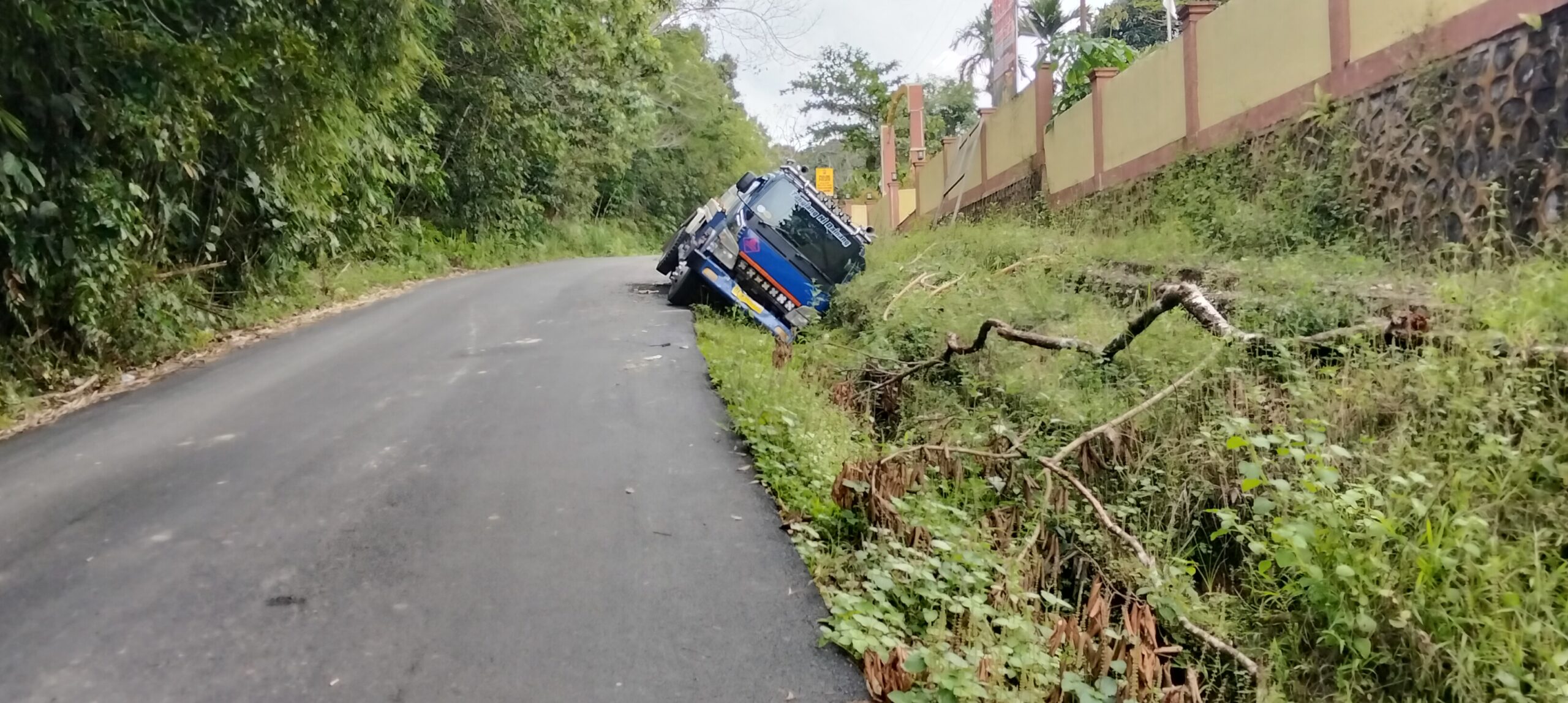 Kecelakaan lalu lintas kembali terjadi di ruas Jalan Saripoi–Puruk Cahu, tepat di depan Mapolsek Tanah Siang, Minggu (15/2/2026). Sebuah truk tangki bermuatan solar kapasitas 5.000 liter milik PT Yosua Energi Sinaga, transportir PT Borneo Prima, terperosok saat melintas menuju camp Borneo Prima di wilayah Bua.