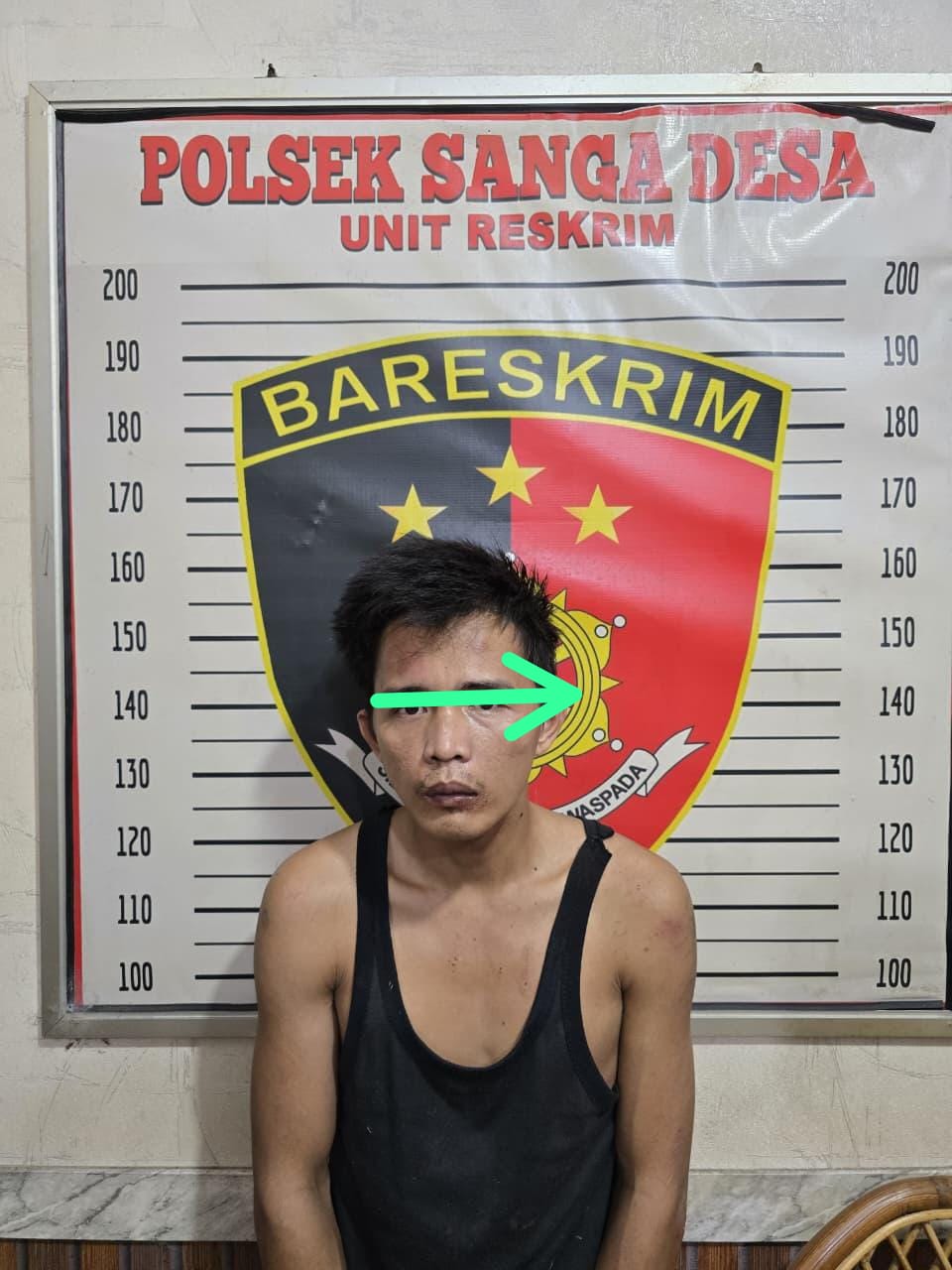 “Pada hari Minggu tanggal 17 Agustus 2025 sekitar pukul 11.40 WIB kita dapat informasi keberadaan Tersangka. Lalu kita perintahkan Kanit Reskrim Ipda Heri Fitha, bersama Anggota Reskrim Polsek Sanga Desa melakukan penangkapan tersangka,” kata Kapolsek.