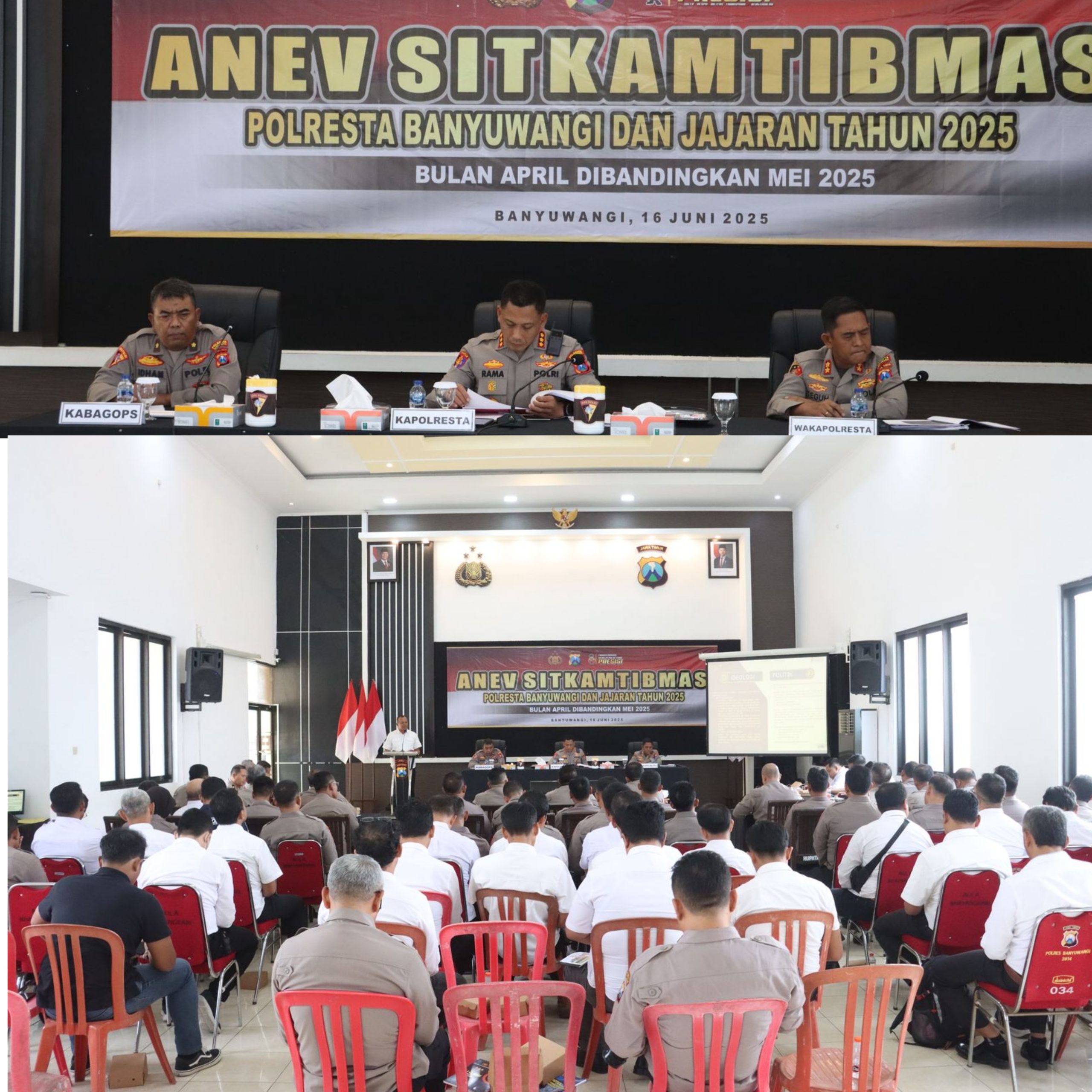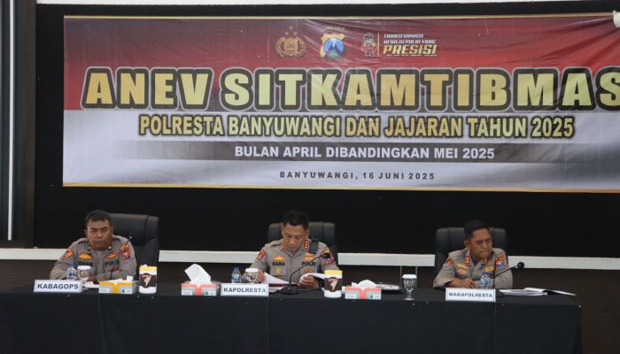 Polresta Banyuwangi terus berbenah. Untuk memastikan layanan kepada masyarakat berjalan optimal, seluruh jajaran menggelar Anev Kamtibmas di Rupatama Wirapratama Polresta Banyuwangi , Senin (16/6/2025).