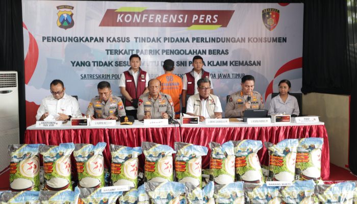 Polda Jawa Timur melalui Satgas pangan Polresta Sidoarjo berhasil mengungkap praktik produksi beras premium tidak sesuai standar mutu yang mencantumkan label SNI dan Halal secara tidak sah.