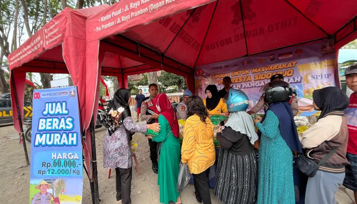 Polresta Sidoarjo Polda Jatim bersama stake holder terkait,melaksanakan Gerakan Pangan Murah (GPM) menyeluruh di wilayah Kabupaten Sidoarjo.