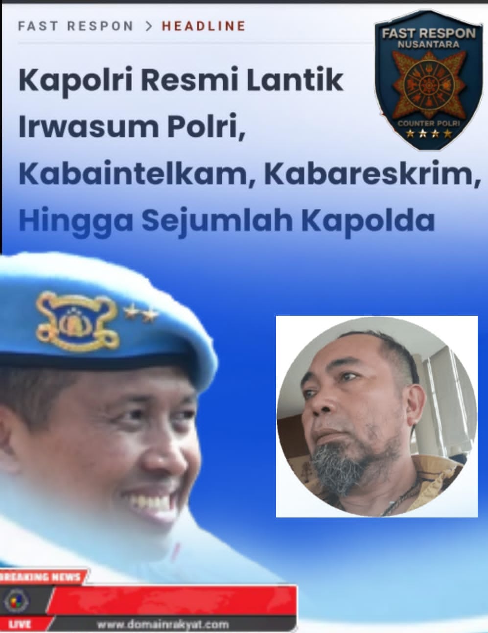 “Atas nama keluarga besar Fast Respon Nusantara (FRN) Counter Polri, kami mengucapkan selamat dan sukses kepada Bapak Komjen Pol Syahardiantono yang telah resmi dilantik sebagai Kabareskrim Polri. Semoga selalu amanah, profesional, dan membawa Polri semakin dipercaya masyarakat,” ujar Agus Flores, (19/8).