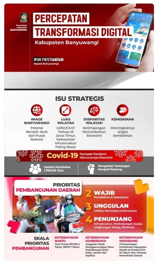 Pemkab Banyuwangi menetapkan percepatan transformasi digital sebagai langkah strategis untuk menghadapi berbagai tantangan pembangunan daerah.