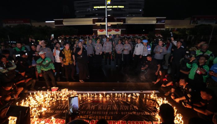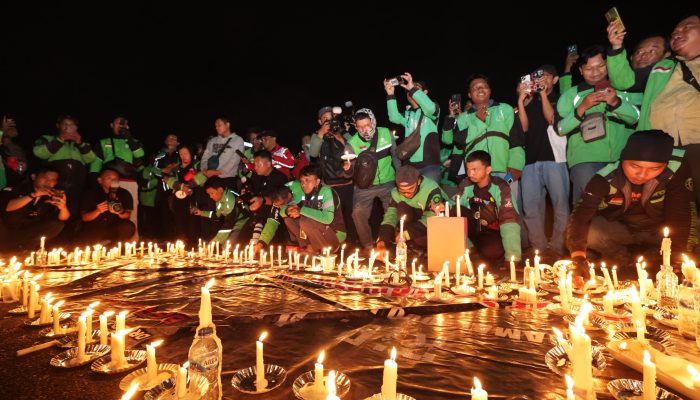 Driver Ojol Gelar Aksi Damai 1000 Lilin di Depan Mapolda Jatim