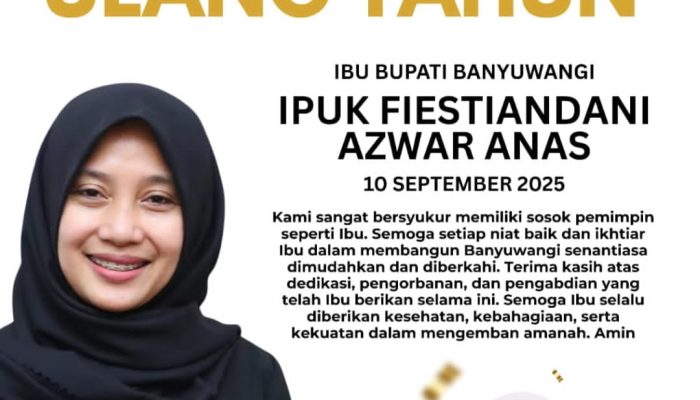 Ucapan ini juga menjadi bentuk apresiasi atas dedikasi Bupati Banyuwangi yang terus berkomitmen membangun daerah, baik melalui program pemberdayaan masyarakat, peningkatan pelayanan publik, maupun pengembangan potensi lokal.