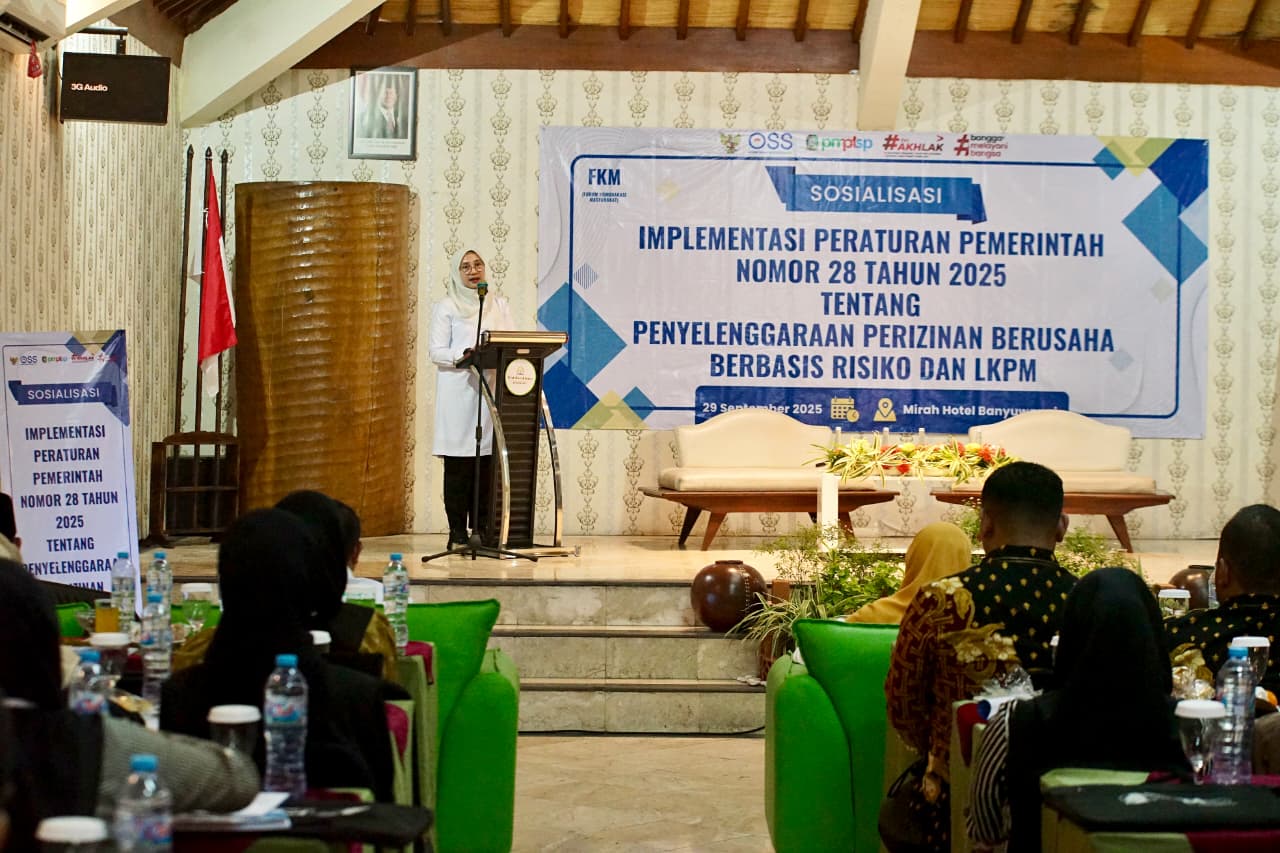 Pemkab Banyuwangi menggelar sosialisasi Peraturan Pemerintah (PP) Nomor 28 Tahun 2025 tentang Penyelenggaraan Perizinan Berusaha Berbasis Risiko, Senin (29/9/2025). PP ini secara spesifik mengatur tentang