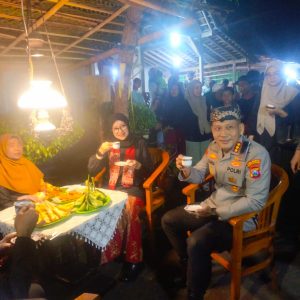 Dengan mengenakan seragam kebesaran Polri, Kombes Rama tampak menyatu bersama masyarakat. Ia berjalan santai di sepanjang jalan desa yang telah disulap menjadi lautan cangkir kopi, sambil menyapa warga yang dengan ramah menawarkan kopi hitam khas Kemiren. Suasana hangat dan aroma kopi yang menggoda menjadikan momen tersebut penuh kebersamaan dan keakraban.