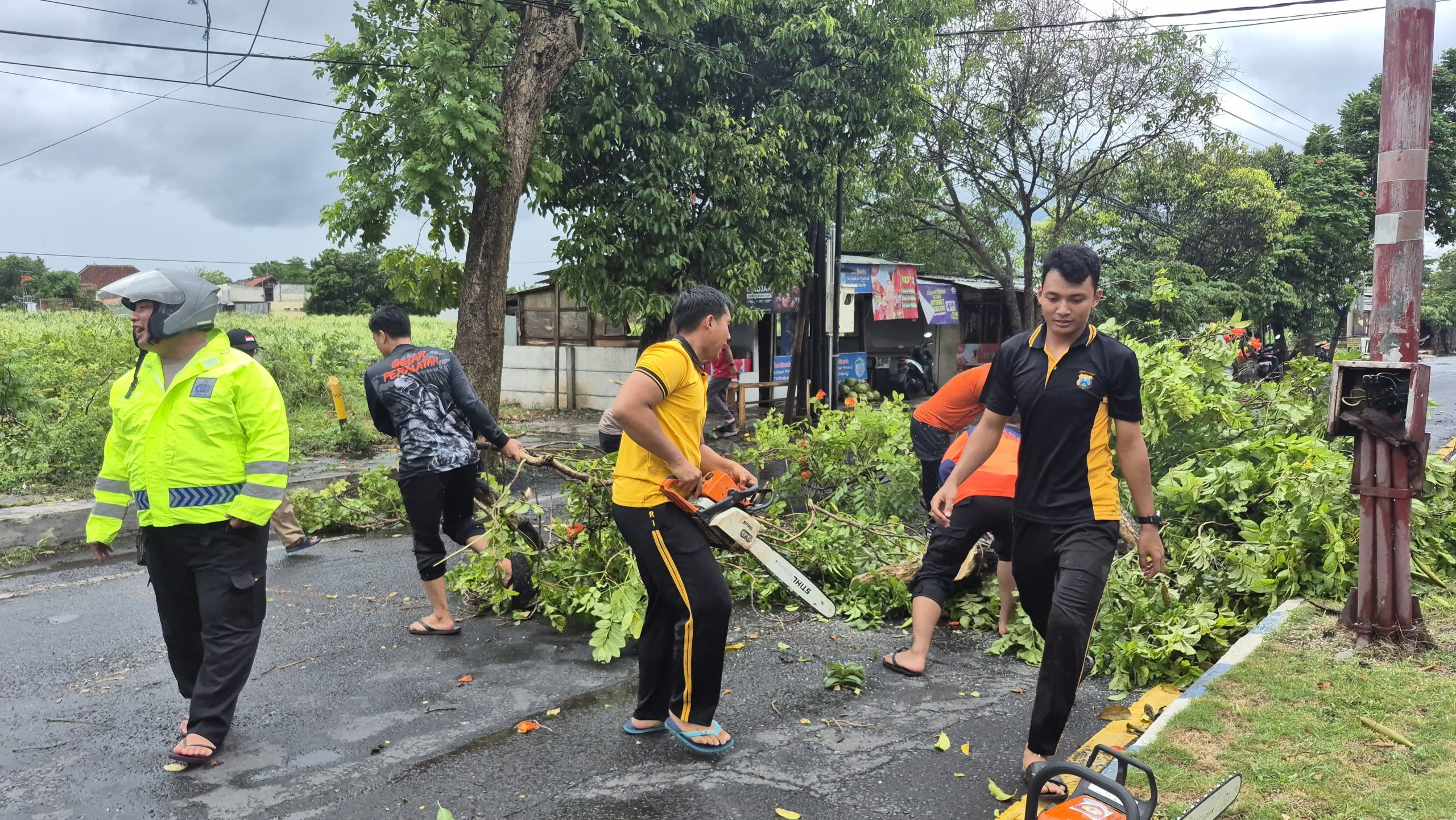Personel Polresta Banyuwabgi dikerahkan untuk membantu pemotongan batang pohon, membersihkan ranting, dan menormalkan kembali akses jalan. Berkat kolaborasi dan kerja cepat tersebut, seluruh lokasi terdampak berhasil ditangani dan situasi kembali aman dan kondusif.