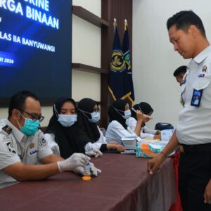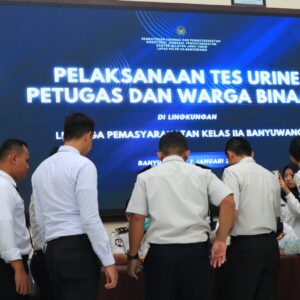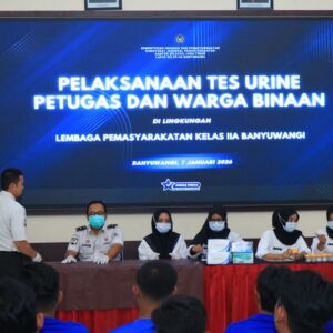 LAPAS (Lembaga Pemasyarakatan) Kelas IIA Banyuwangi terus menunjukkan komitmennya dalam menciptakan lingkungan yang bersih dari peredaran gelap narkotika. Sebagai langkah preventif, Lapas Banyuwangi kembali menggelar tes urine mendadak yang menyasar jajaran pegawai hingga perwakilan warga binaan, (08/01).
