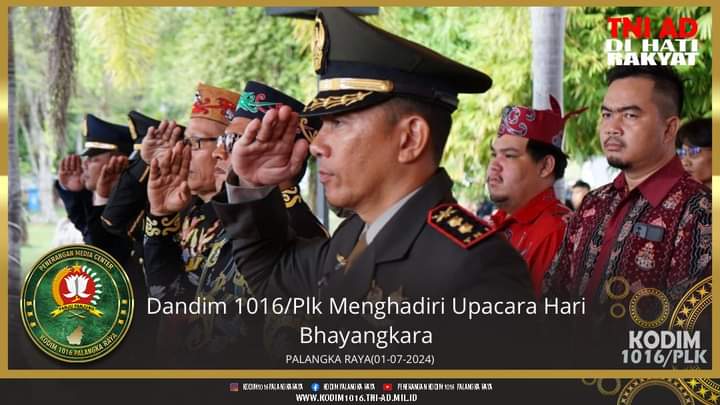 Secara khusus Dandim 1016/Palangka Raya Letkol Arh Jimmy Hutapea,S.E., beserta keluarga besar Kodim 1016/Palangka Raya mengucapkan selamat hari Bhayangkara ke -78 tahun 2024.