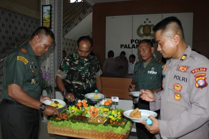 Kedatangan Dandim 1016/Palangka Raya bersama Perwira Staf serta perwakilan Personel ke Polres Palangka Raya langsung diterima oleh Kapolres Palangka Raya Kombes Pol. Budi Santosa, S.H., S.I.K., M.H., dan langsung melakukan pemotongan tumpeng.