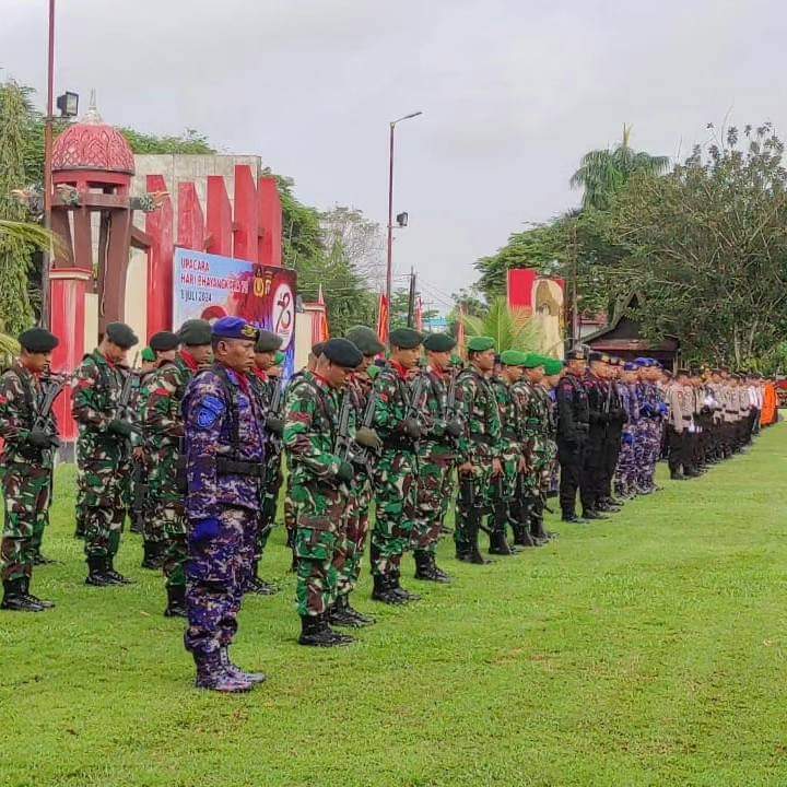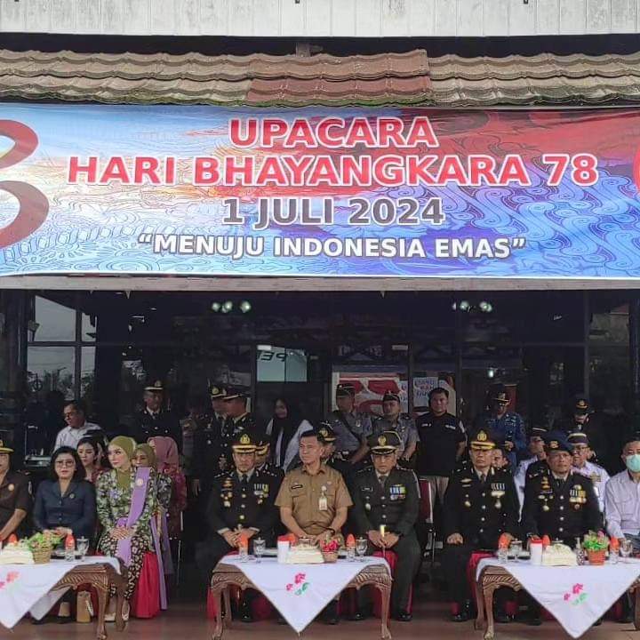DOMAINRAKYAT.com. Kotawaringin Timur-Komandan Kodim 1015/Sampit Letkol Inf Muhammad Tandri Subrata,S.A.P.M.Han menghadiri upacara peringatan hari ulang tahun bhayangkara ke 78 Tahun 2024 di Halaman Kantor Bupati Kotawaringin Timur,Jalan Suderman,Kel.MB Hulu,Kec.MB Ketapang,Kab.Kotim,Senin(01/07).