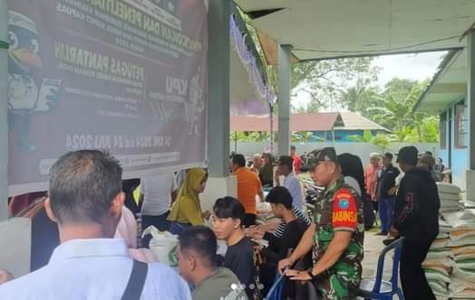 DOMAINRAKYAT.com. Kuala Kapuas- Pastikan berjalan aman dan lancar di setiap kegiatan di wilayah binaan Babinsa Koramil 1011-02/Kapuas Hilir .Sertu Joko Purnomo didampingi 3 anggota babinsa lainnya.melaksanakan Pendampingan dan pemantauan kegiatan penyaluran bantuan pangan bertempat di Kantor Kecamatan Kapuas Hilir Kab. Kapuas. (03/07/2024)