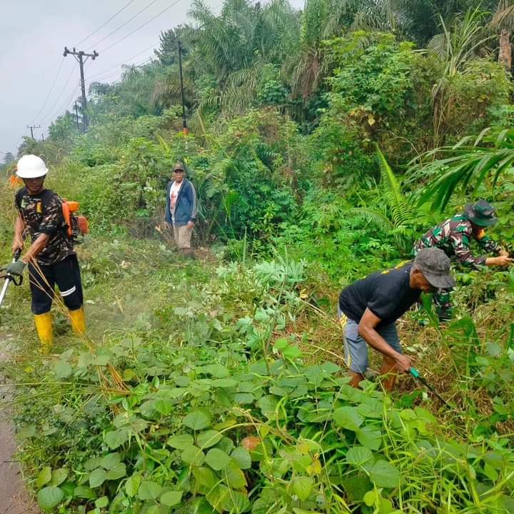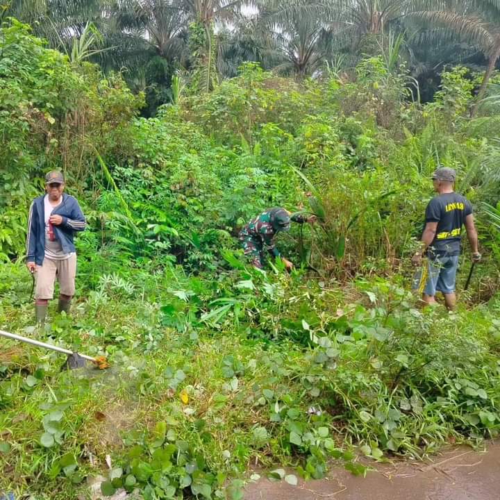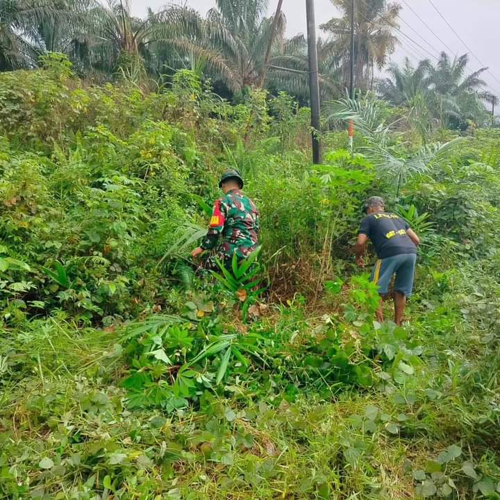 Kegiatan gotong royong dalam rangka mewujudkan lingkungan bersih dan sehat ini dilakukan Babinsa bersama warga demi menciptakan kepedulian terhadap lingkungan sekitar, mengingat pohon yang sebagian sudah rimbun mengganggu penerangan jalan.
