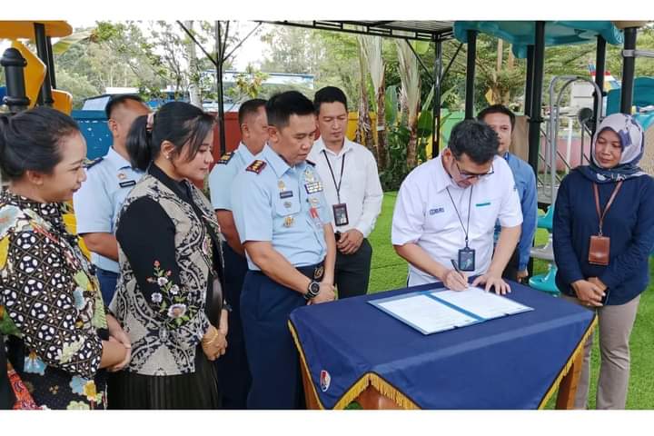 DOMAINRAKYAT.com. Pangkalan Bun- (TNI AU) Dalam upaya untuk meningkatkan kualitas fasilitas dan kenyamanan dalam bermain anak-anak di KB/TK Angkasa Lanud Iskandar, Bank Rakyat Indonesia (BRI) telah memberikan bantuan Program Corporate Social Responsibility (CSR) BRI Peduli, berupa pembangunan kanopi playground dan lantai rumput sintetis.