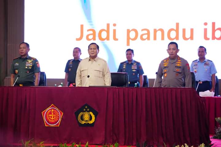 Jakarta DOMAINRAKYAT.com//-(Puspen TNI). Panglima TNI Jenderal TNI Agus Subiyanto dan Kapolri Jenderal Pol Listyo Sigit Prabowo menghadiri acara pembekalan Menteri Pertahanan (Menhan) RI Prabowo Subianto kepada Calon Perwira Remaja (Capaja) TNI-Polri Tahun 2024, bertempat di Gedung Balai Sudirman, Tebet, Jakarta Selatan, Jumat, (12/7/2024).