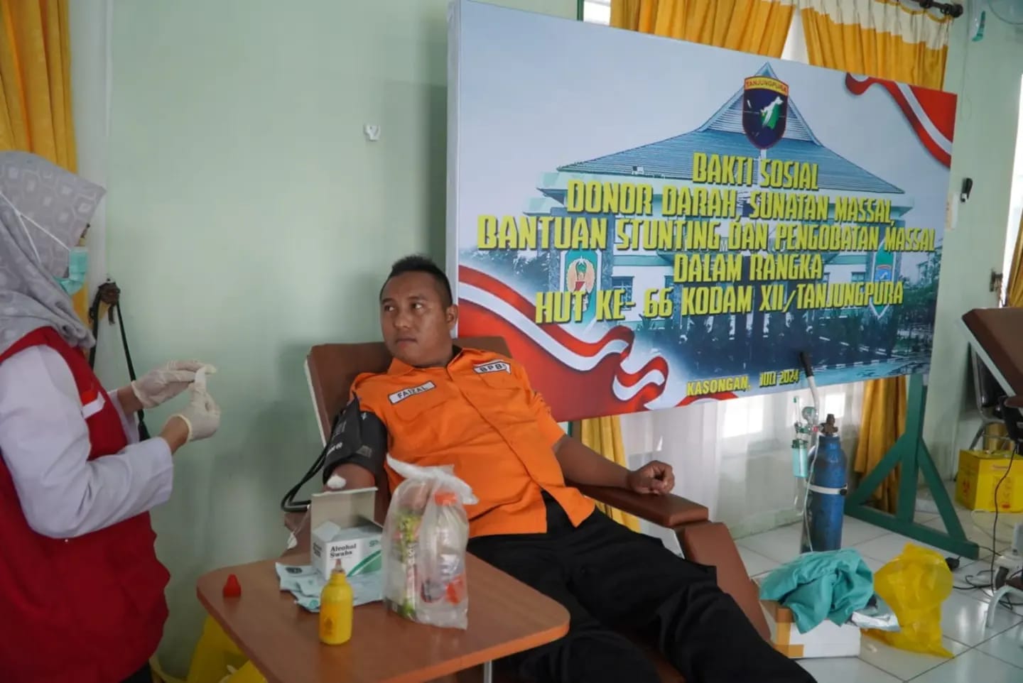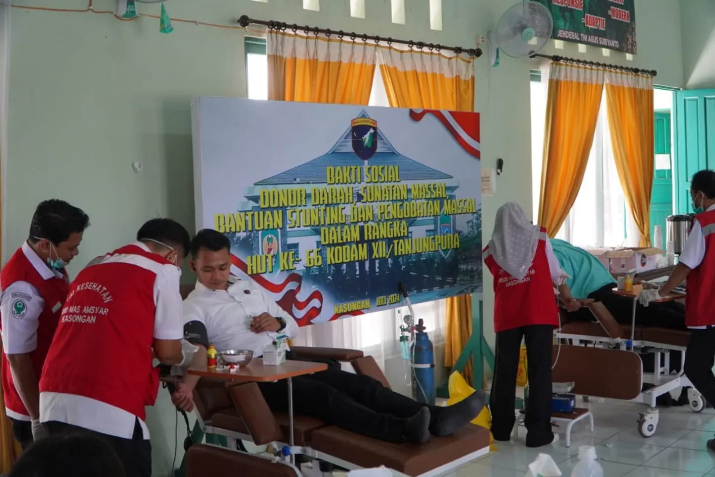 Kasongan. DOMAINRAKYAT.com- Kodim 1019/Ktg menggelar bakti sosial donor darah dalam rangka menyambut hari jadi ke-66 Kodam XII/Tpr di Aula Makodim 1019/Ktg, Jl. Ahmad Yani Komplek Perkantoran Kereng Humbang, Kel. Kasongan Lama, Kec. Katingan Hilir, Kab. Katingan. (Senin 15/07/2024).